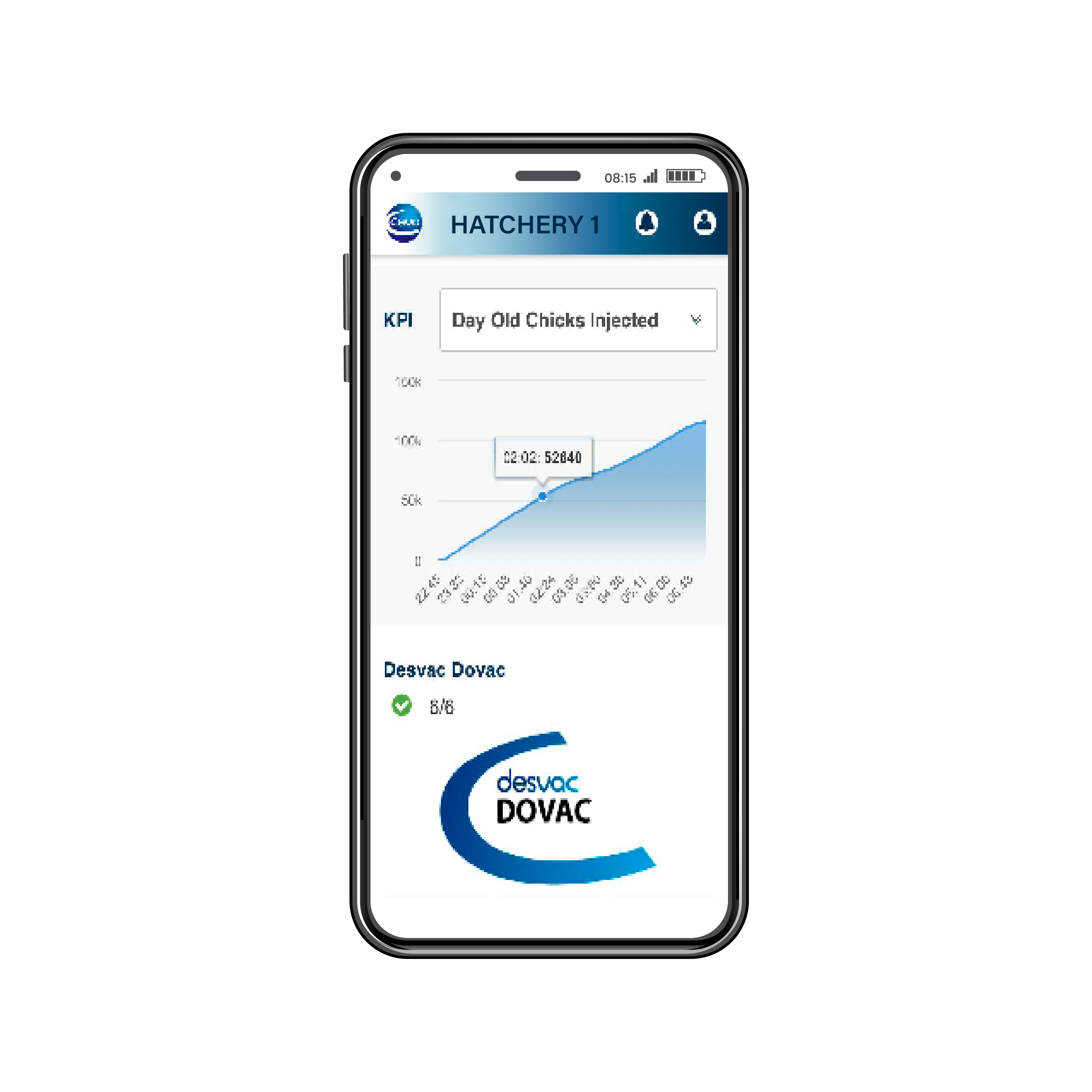 Ricevi aggiornamenti sullo stato della produzione e notifiche automatiche in tempo reale tramite l’app mobile Ceva Hatchery Connect®. Rimani costantemente informato, ovunque ti trovi, e prendi decisioni rapide basandoti su dati aggiornati riguardanti trasferimenti, risultati della schiusa e malfunzionamenti delle apparecchiature.